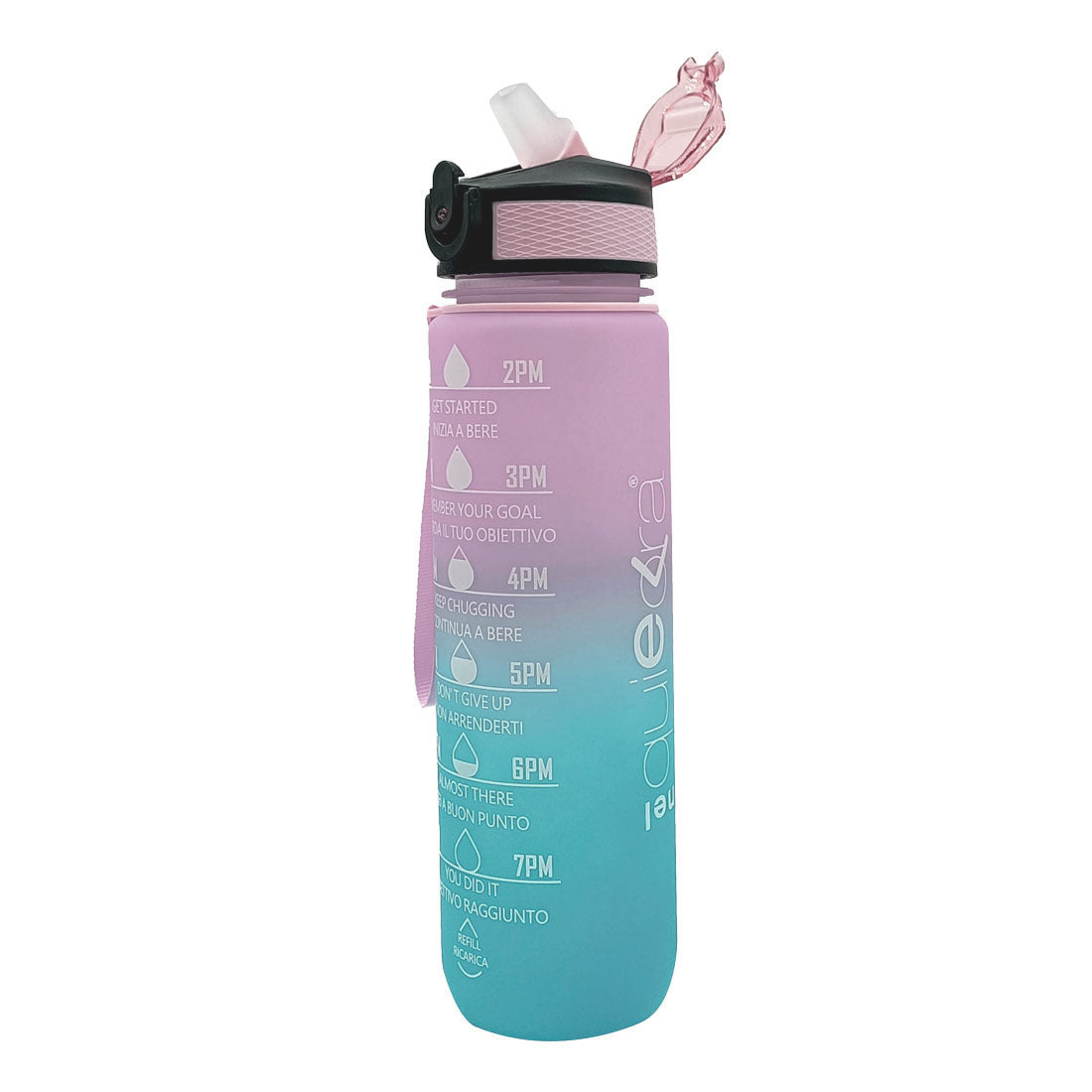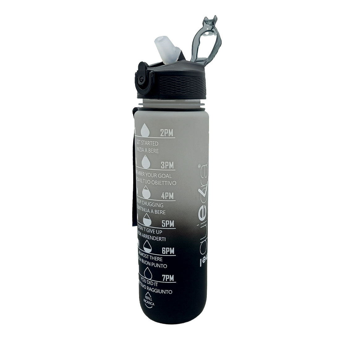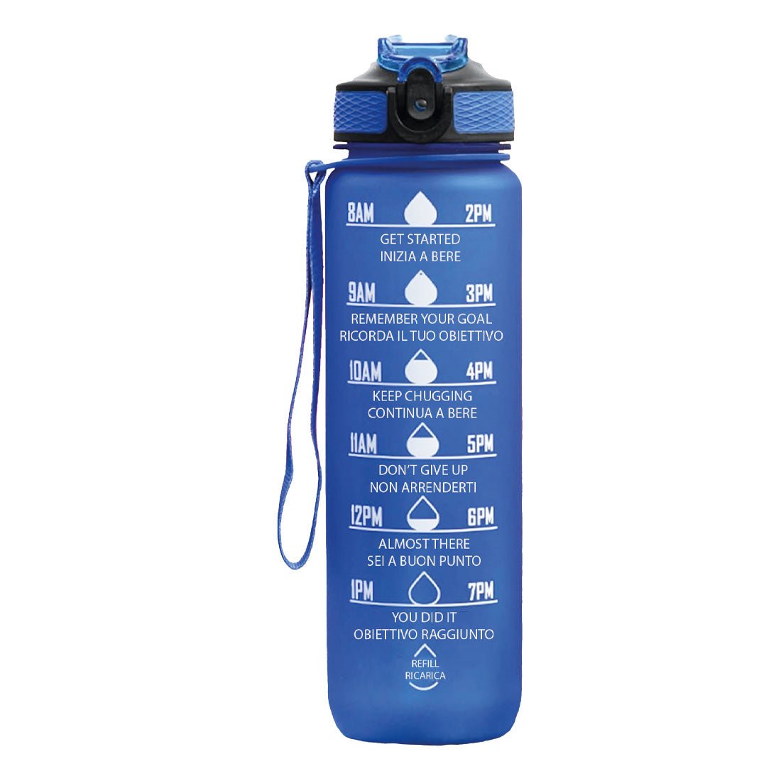 - Livelli e indicatori del tempo stampati sulla bottiglia per monitorare il consumo giornaliero di acqua