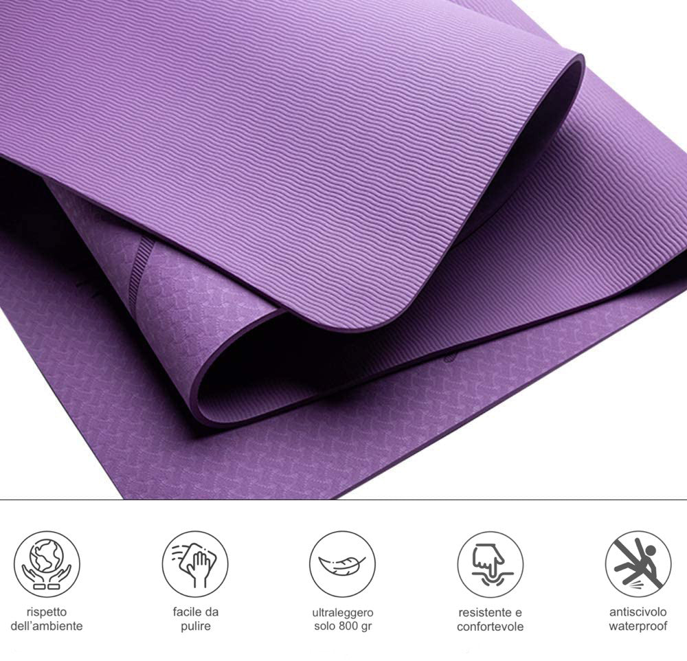 The FitPaddy Mat mats are made of TPE, a high-quality and completely recyclable ecological materialcharacterized by high elasticity, anti-slip properties, impermeability, particularly resistant to wear, odorless, hypoallergenic and easily washable to ensure maximum hygiene.