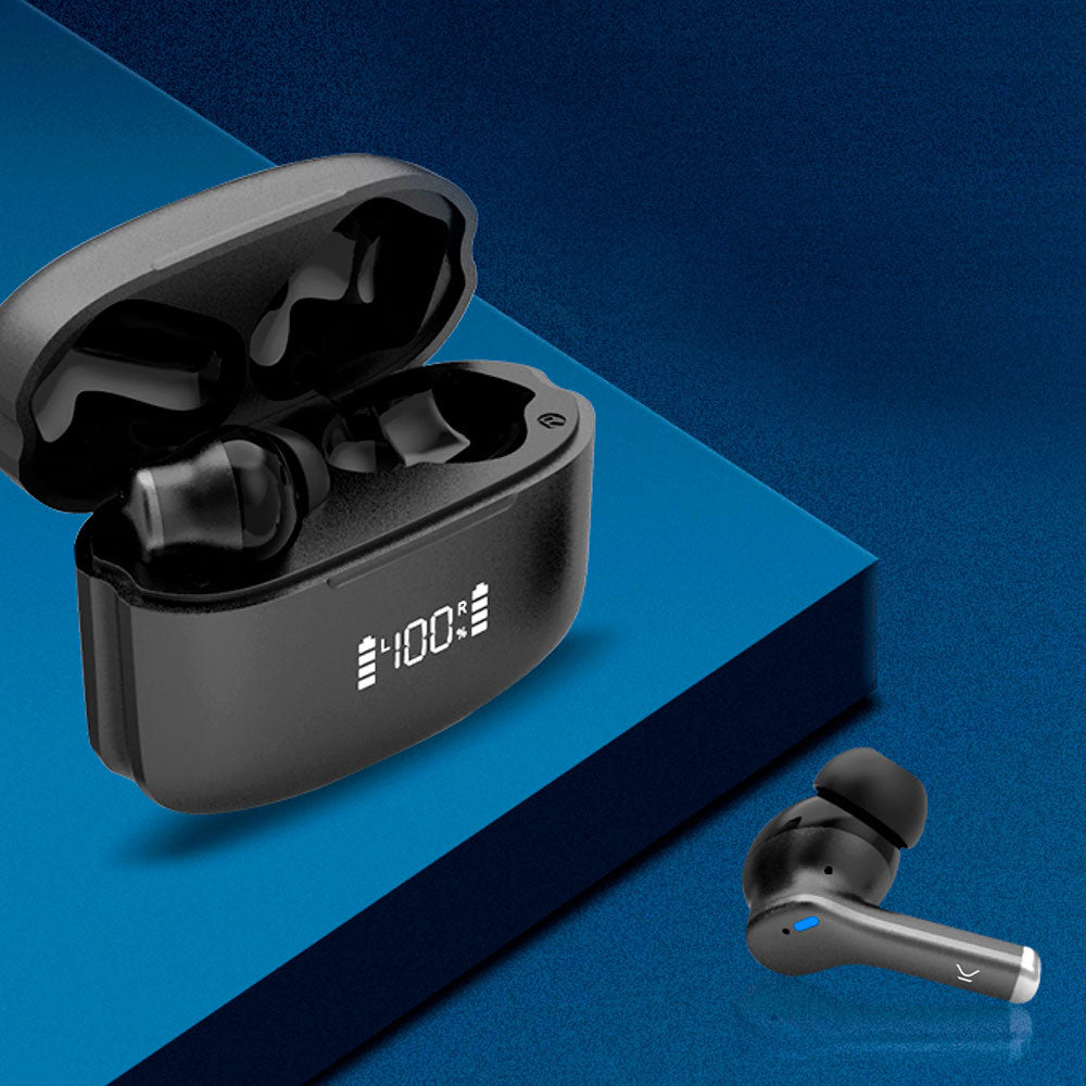 La custodia di ricarica intelligente, dotata di display LED, mostra il livello della batteria di ogni auricolare e della custodia stessa, garantendo un controllo preciso e pratico. Gli auricolari offrono 6 ore di autonomia, a cui si aggiungono 12 ore fornite dalla custodia, per un totale di 18 ore di utilizzo continuo. La ricarica completa richiede solo 1 ora tramite USB-C.