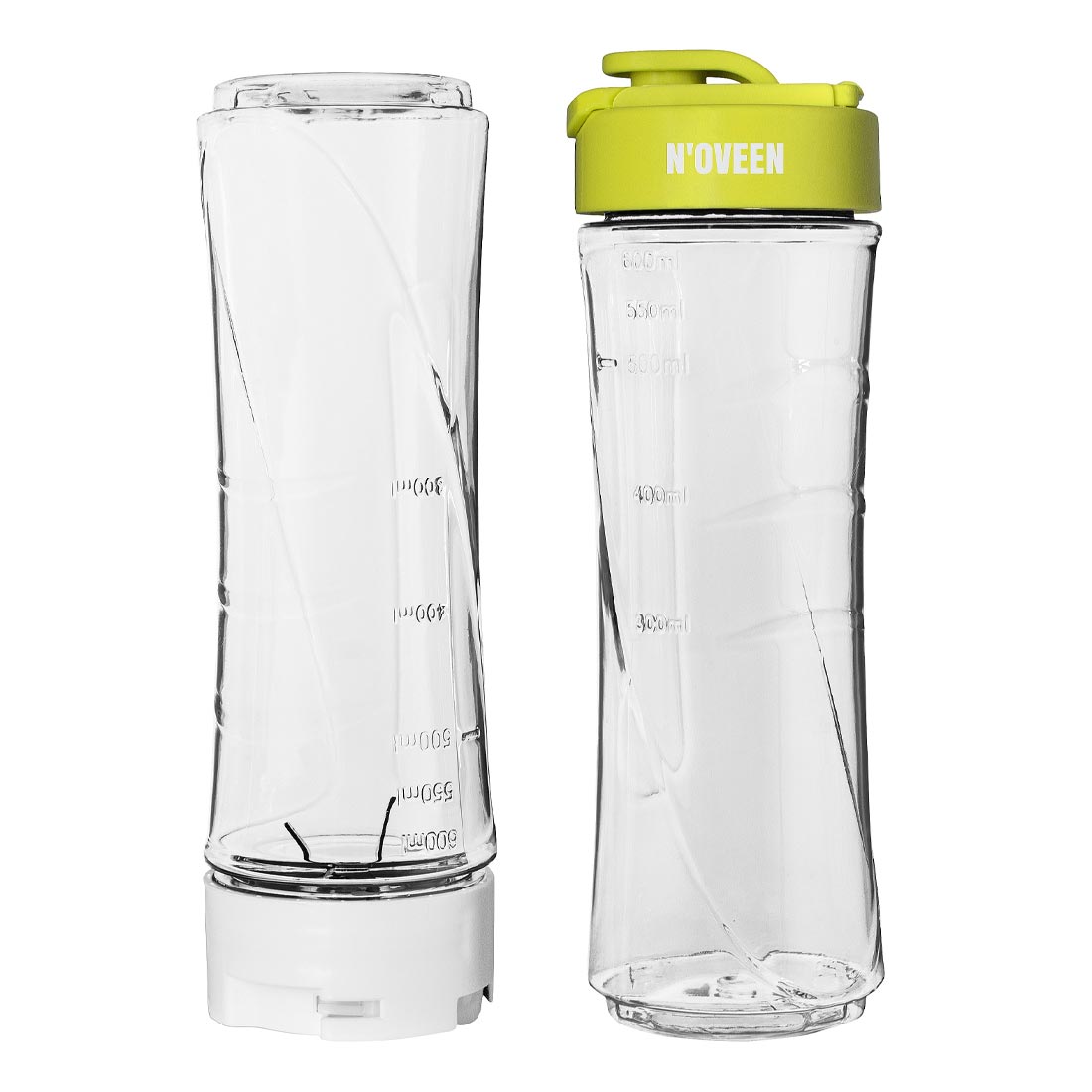 Il frullatore è fornito di due bottiglie ergonomiche, progettate con tappo anti-goccia e una comoda custodia per il trasporto, perfette per chi è sempre in movimento. Le bottiglie sono inoltre compatibili con i portabevande di auto e biciclette, rendendole ideali per l’uso durante spostamenti o attività all’aperto.